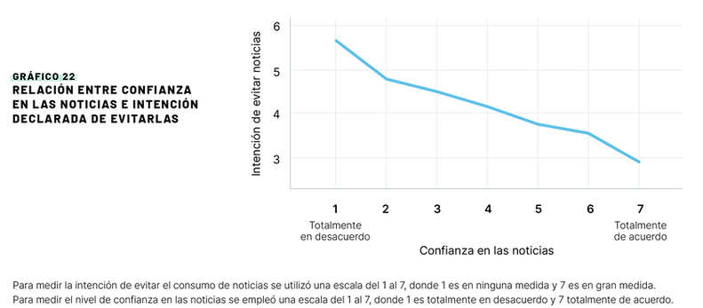 Los datos revelan una relación significativa entre la intención de evitar las noticias y la confianza declarada en las mismas: a mayor confianza en el trabajo periodístico, menor intención de evitarlas y viceversa.